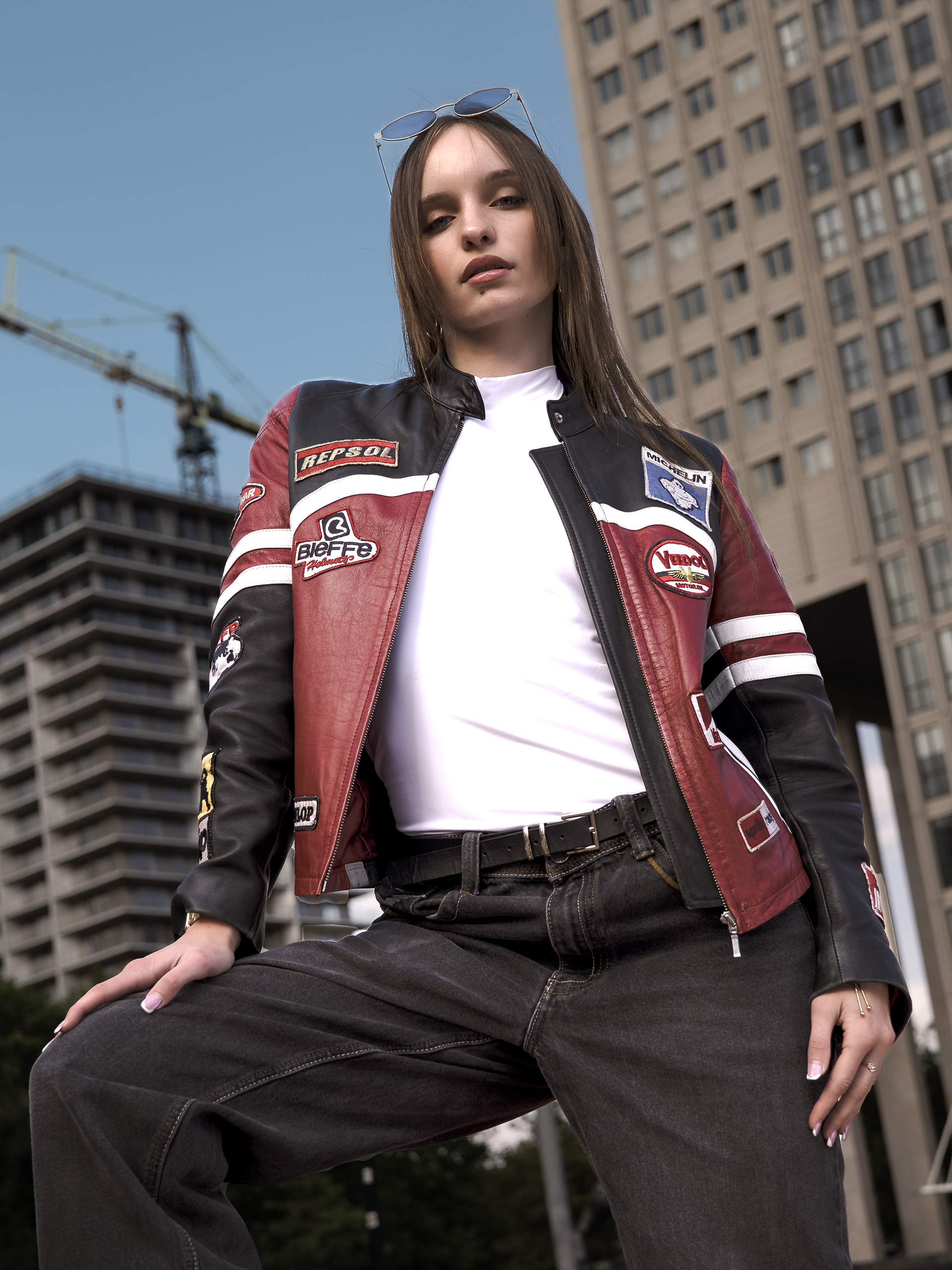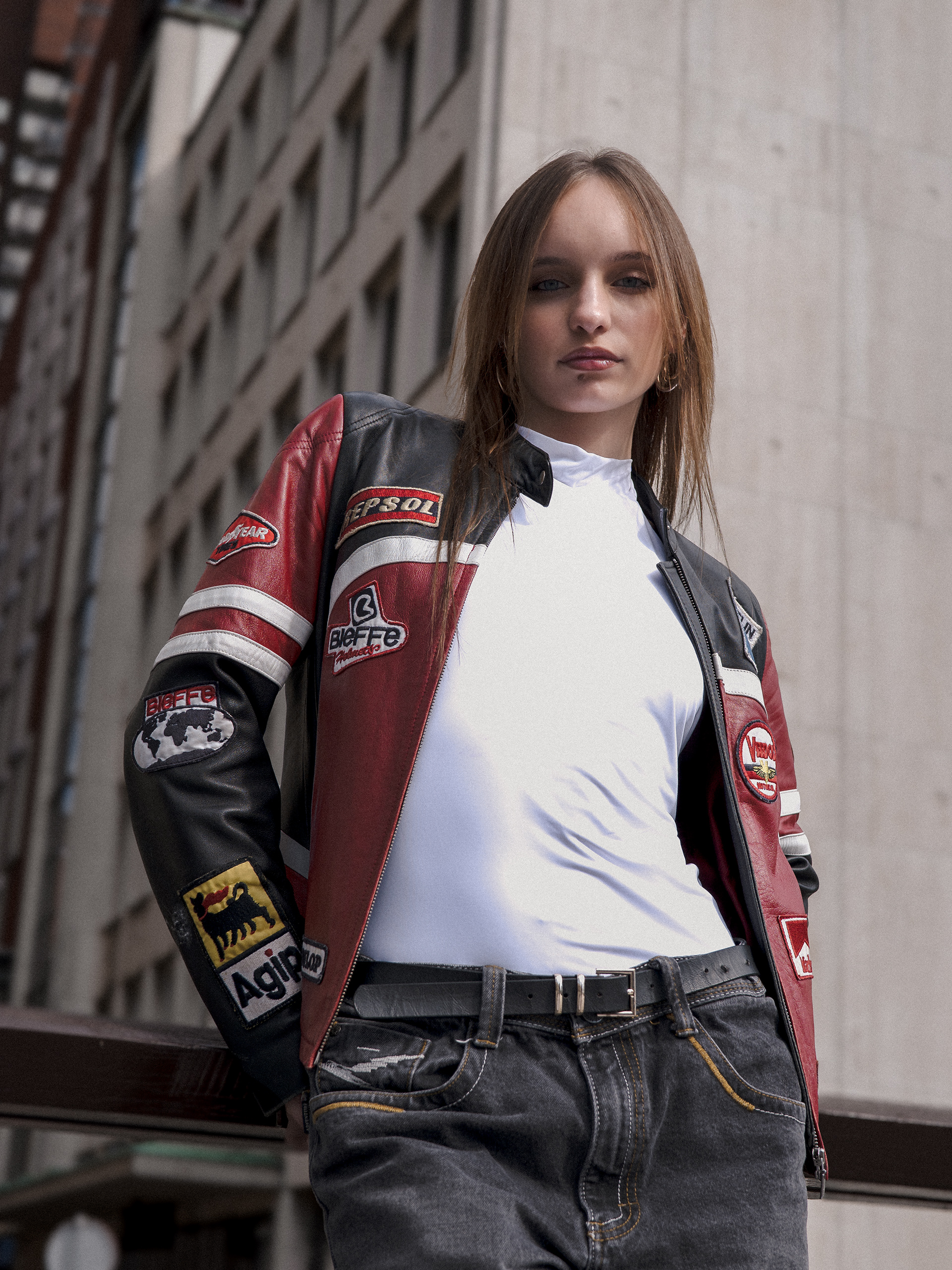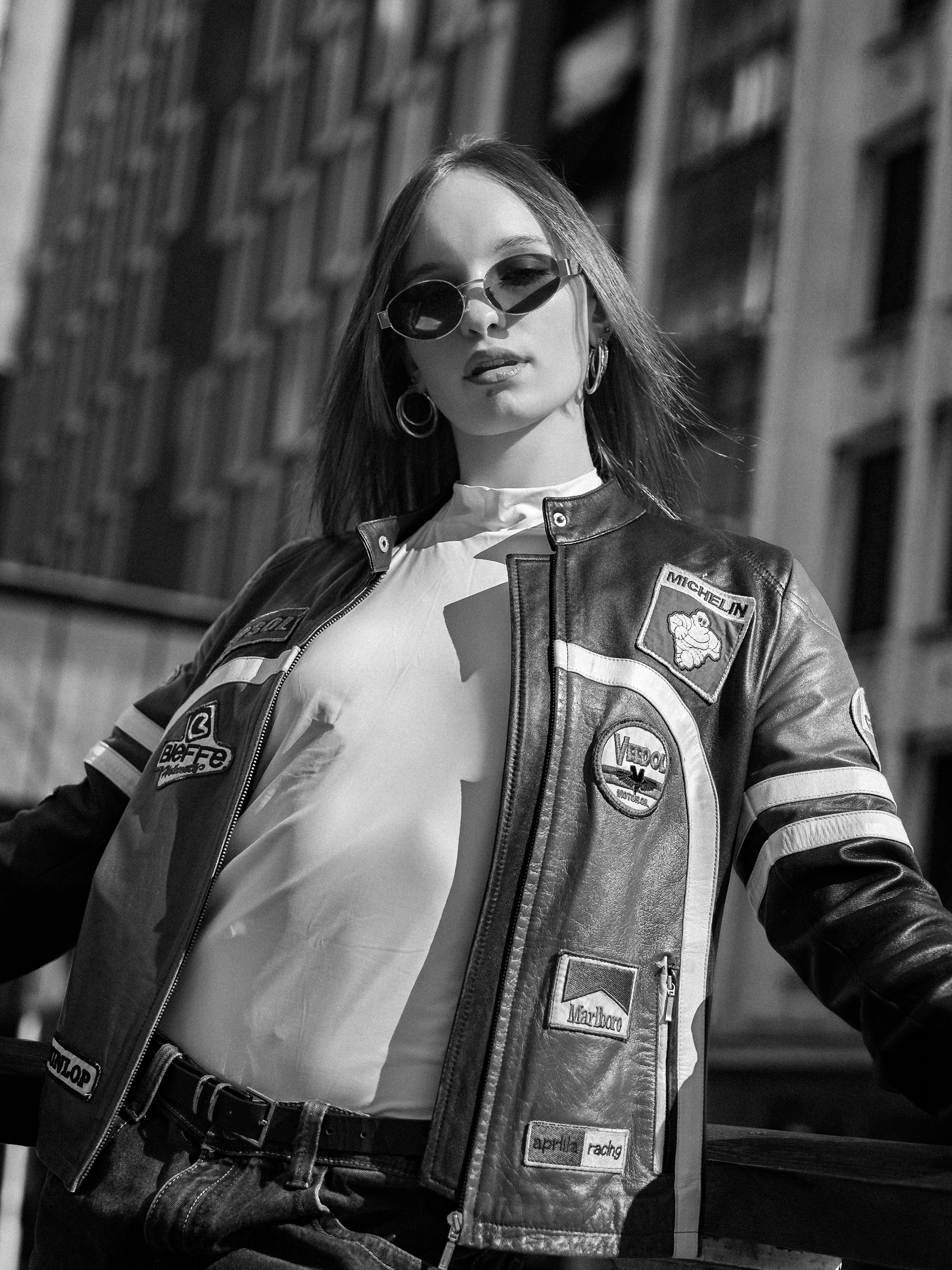 Madara turns the city into her runway. Draped in a vintage racing jacket, she fuses speed and style, grit and glamour. Against concrete skylines, she embodies a bold, effortless, and unapologetically modern muse — the Metropolitan Muse.