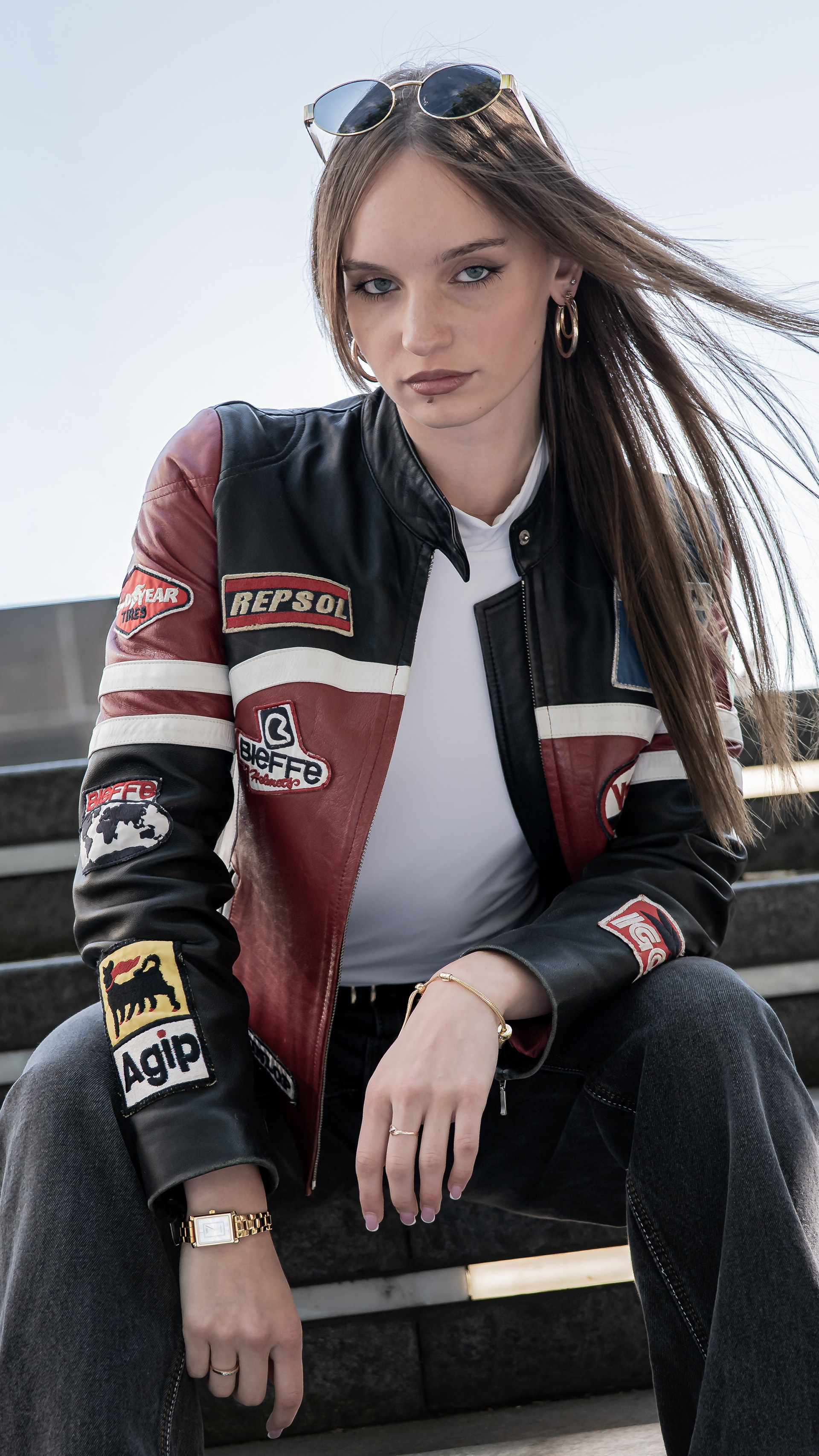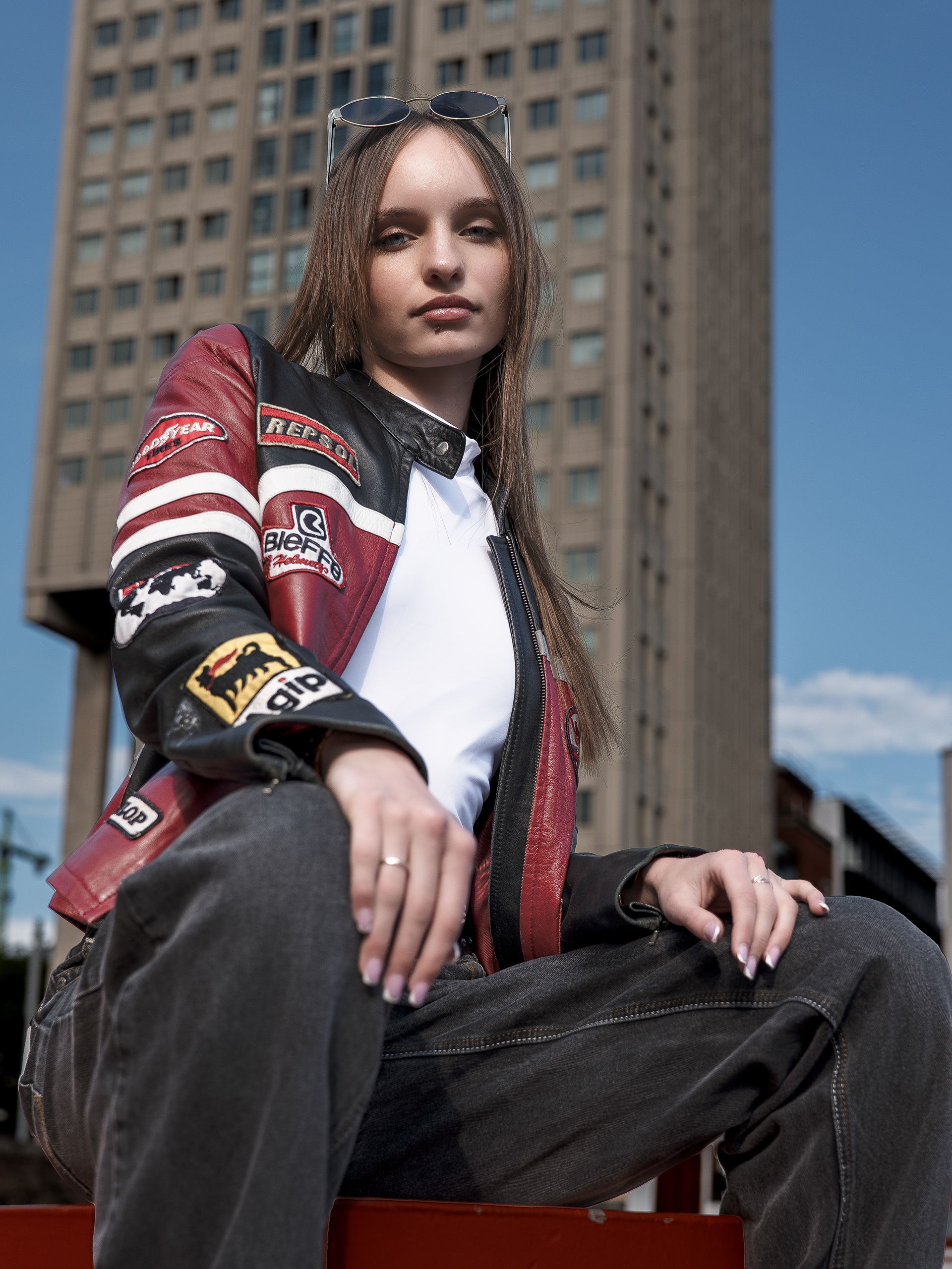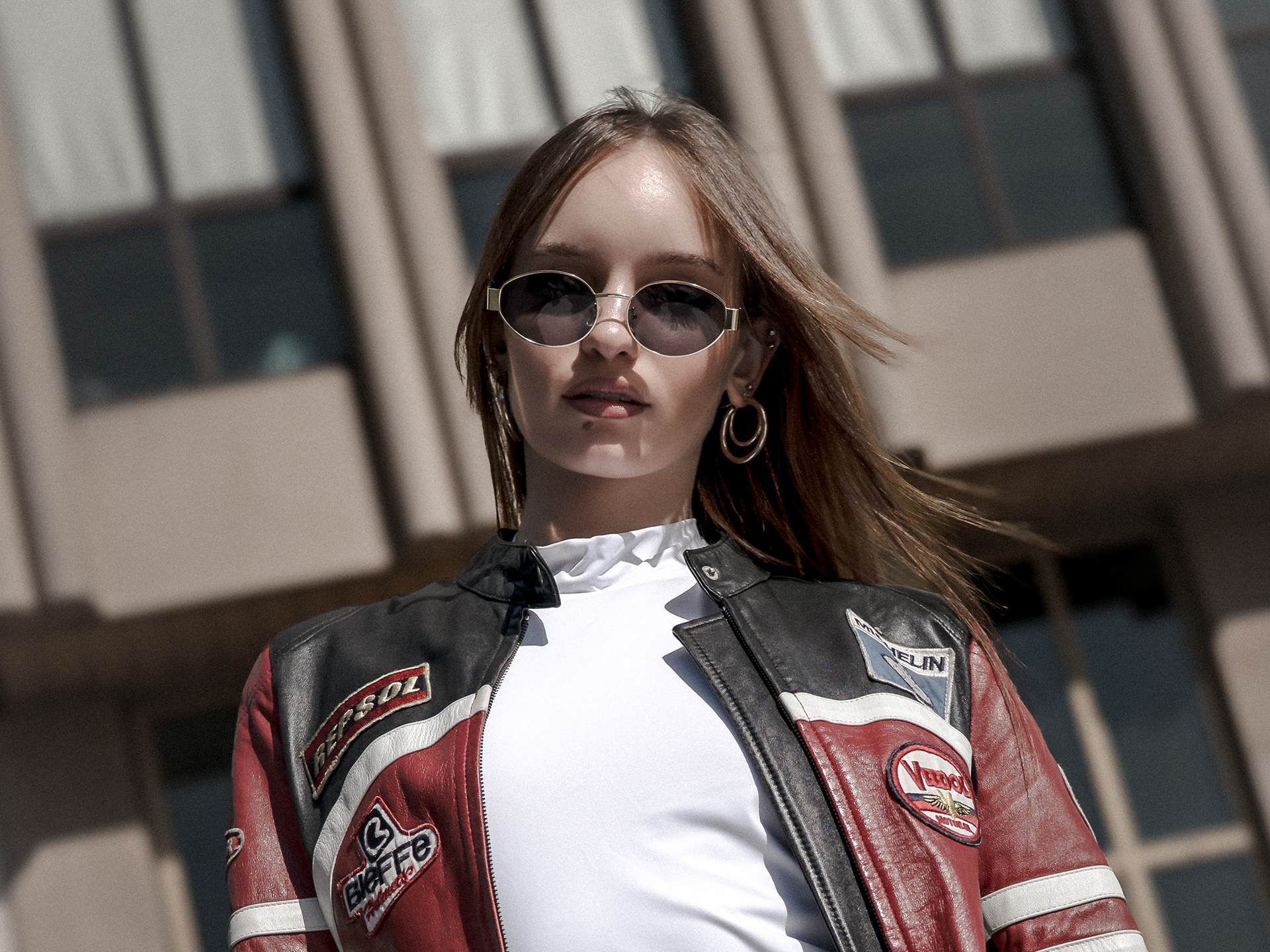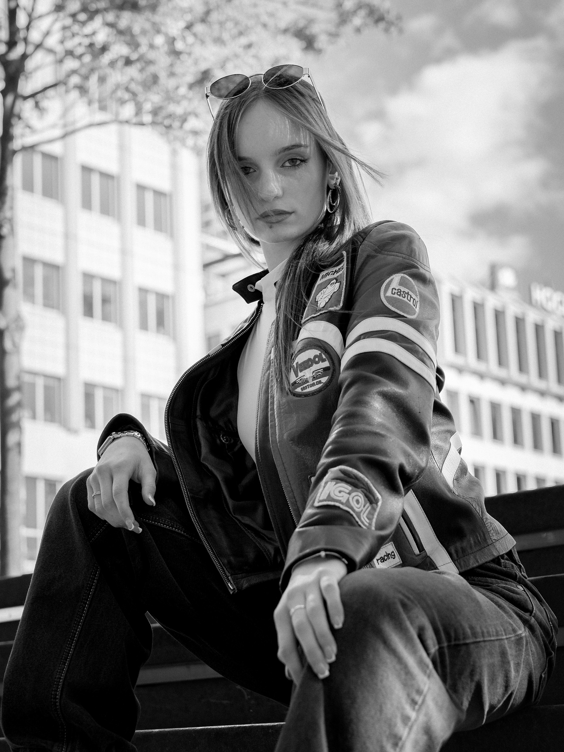 Madara turns the city into her runway. Draped in a vintage racing jacket, she fuses speed and style, grit and glamour. Against concrete skylines, she embodies a bold, effortless, and unapologetically modern muse — the Metropolitan Muse.